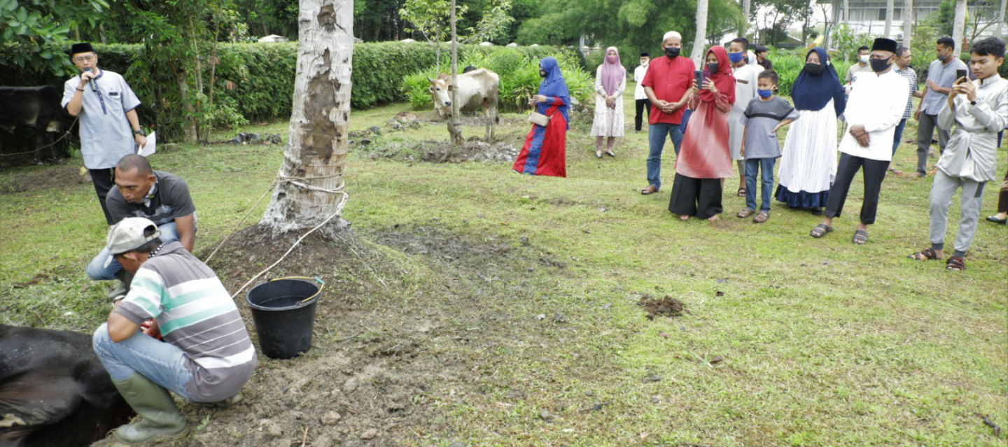 Asahan – Kegiatan penyembelihan hewan qurban yang selalu dilaksanakan oleh Pemerintah Kabupaten Asahan dalam merayakan Hari Raya Idul Adha di tengah pandemi Covid-19 tetap dilaksanakan. Walaupun kegiatan tersebut berbeda dari tahun sebelumnya.