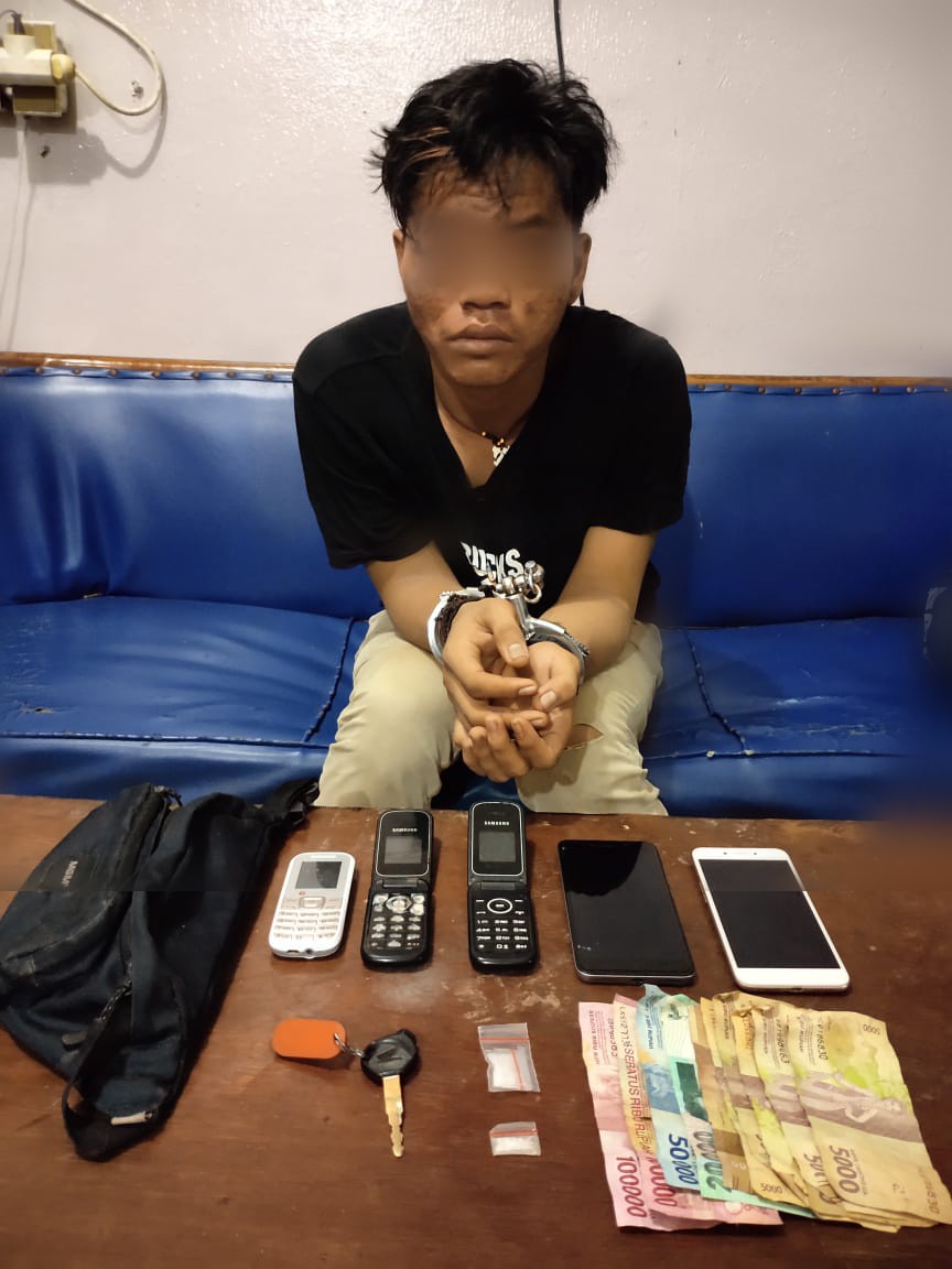 Saat diamankan, dari tangan tersangka Team Opsnal menyita barang bukti sabu-sabu sebanyak 2 paket dengan berat 0,86 gram. Barang bukti lainnya juga disita diantaranya 5 buah plastic pack di dalam kotak kecil warna orange, 1 handphone merk Xiaomi redmi 6A warna hitam dan juga 1 unit sepeda motor merk Honda Revo warna hitam tanpa No Pol.
