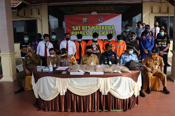 Press release pengungkapan kasus narkoba tersebut dipimpin langsung Kapolres Bengkalis diwakili Wakapolres Bengkalis Kompol Roni Syahendra didampingi Kepala Lapas Kelas II A Bengkalis Edi Mulyono, Kepala Kantor Bea Cukai Bengkalis Ony Ipmawan, Kepala Satpol PP Kabupaten Bengkalis Jenri Salmon Ginting, Kepala Dinas Kesehatan Kabupaten Bengkalis dr. Ersan Saputra, Kepala Badan Kesbangpol Kabupaten Bengkalis, Hermanto Baran dan Ketua MKA LAMR Kabupaten Bengkalis Datuk Seri H. Zainudin Yusuf.