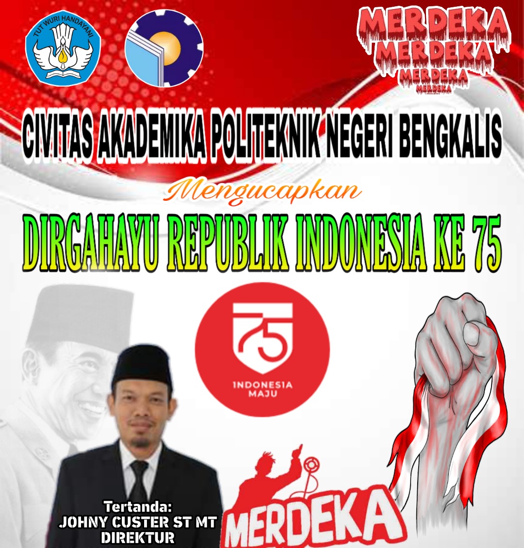 Civitas Akademika Politeknik Negeri Bengkalis Mengucapkan Dirgahayu RI Ke 75FitriadiSenin , 17 Agustus 2020Bengkalis600 Dilihat Total Pembaca: 600 Baca Juga Polbeng Mendukung Program KONI Dalam Pelaksanaan Peningkatan Sumber Daya Manusia (SDM) Atlet Berprestasi Jangan LewatkanAliansi Wartawan Mandiri Berbagi Sembako kepada Kaum DhuafaIkatan Keluarga Tionghoa Sungai Pakning Bagikan 2500 Takjil Gratis kepada Masyarakat MuslimPemerintah Kecamatan Bukit Batu Gelar Rapat Persiapan Malam Pawai TakbirKeluarga Besar SMPN 1 Bukit Batu Bagikan 540 paket Takjil, Korwil Berikan ApresiasiPeduli Korban Kebakaran di Gang Midun, Keluarga Besar PGRI Bukit Batu Beri BantuanPerayaan Imlek 2577 Tahun 2026, Warga Tionghua Sungai Pakning Gelar Berbagai Kegiatan