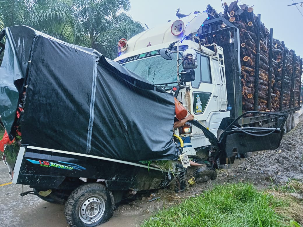 PINGGIR-(BENGKALIS)-Untung tak dapat diraih, malang tak dapat dielakkan. Mungkin pepatah itulah yang tepat menggambarkan kejadian kecelakaan lalulintas yang terjadi pada hari Jumat sore (25/9/20) sekira pukul 13.30 WIB. Dimana kecelakaan yang terjadi di Jalan Lintas Pekanbaru-Duri Km. 105 Desa Muara Basung Kecamatan Pinggir itu melibatkan 1 (satu) unit mobil merk Suzuki Carry pick up BM 8683 DJ dengan 1 (satu) unit mobil merk Mitsubishi Fuso truck balak BM 8616 CT.