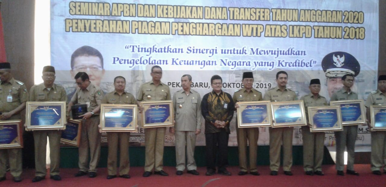 Demikian ungkapan yang disampaikan Bupati Suyatno, disela menghadiri seminar APBN dan kebijakan dana transfer tahun anggaran 2020, dan penyerahan piagam penghargaan Wajar Tanpa Pengecualian (WTP) atas LKPD tahun 2018 di Hotel Aryaduta, Pekanbaru, Selasa (29/10/2019).