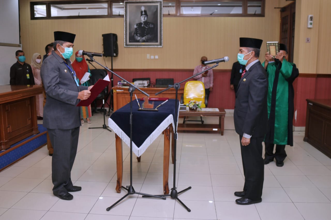SIAK-Drs. H, Jamaluddin M.Si kembali dilantik sebagai Penjabat Sekretaris Daerah untuk kali kedua, di Ruang Rapat Siak Sri Indrapura Kantor Sekretariat Daerah Kabupaten Siak, Senin siang (4/5/20). Pelantikan dilaksanakan menindaklanjuti Surat Keputusan Gubernur Riau Nomor KPTS/795/4/2020 tentang Penunjukan Penjabat Sekretaris Daerah Kabupaten Siak, untuk mengisi kekosongan jabatan defenitif Sekretaris Daerah Kabupaten Siak.