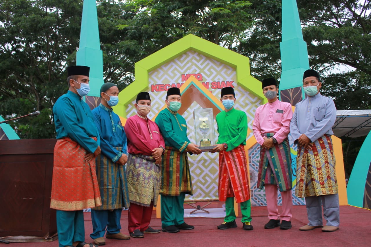 Ia juga mengucapkan selamat dengan kinerja para panitia atas terselenggaranya Kegiatan MTQ Kec Siak tersebut.ia juga berpesan kepada Peserta yang mendapatkan Juara agar tetap mempertahankan prestasi nya.hal tersebut dikarenakan kecamatan siak sering mendapatkan Juara ketika berlaga di MTQ Tingkat Kabupaten.