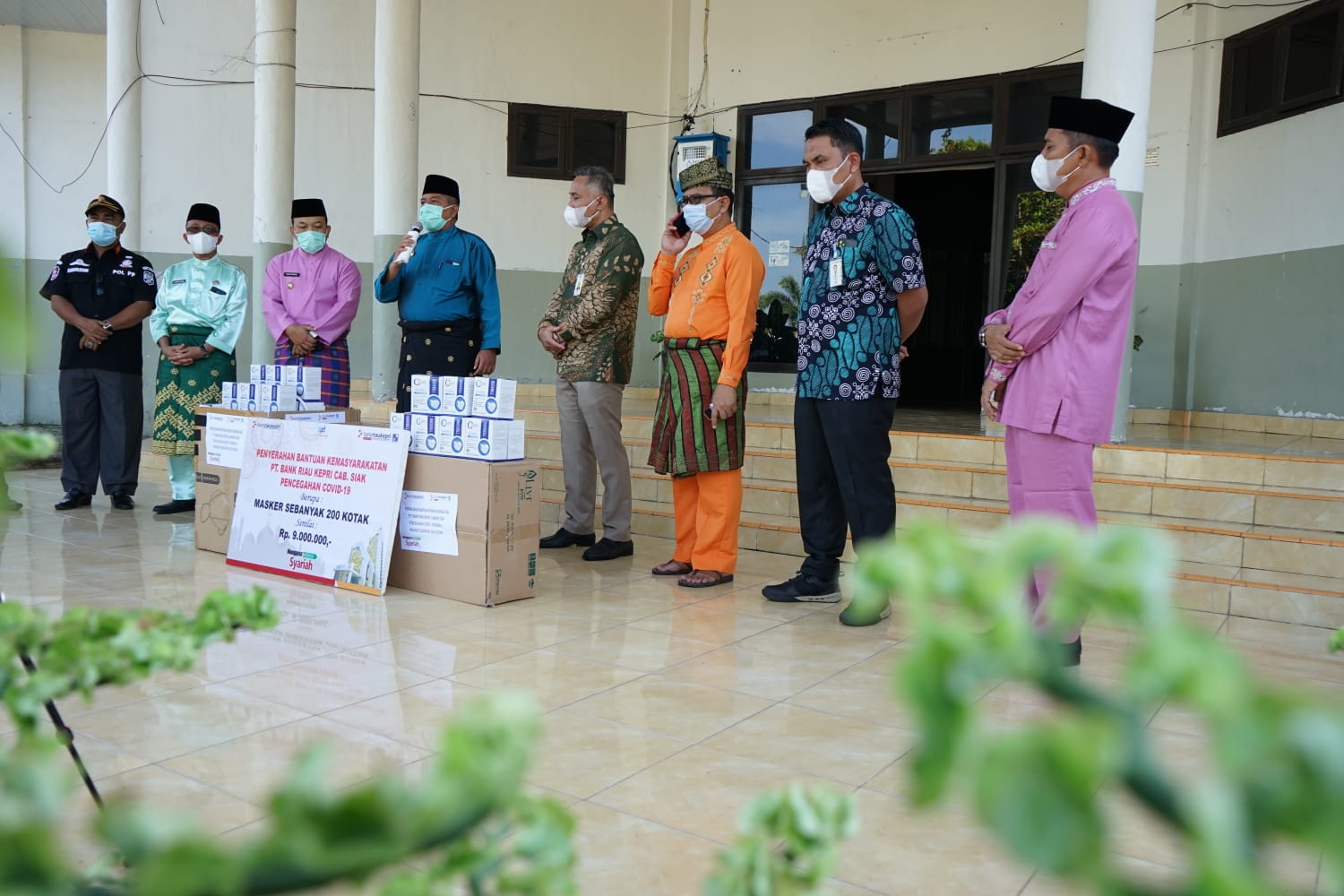 Kepala Bank Riau Kepri Cabang Siak Indra Gunawan, mengucapkan terimakasih pihaknya dipilih peran untuk ikut membantu pencegahan Covid-19, dengan memberikan bantuan 200 kotak masker. Ia berharap bantuan ini dapat membantu menekan angka penularan Covid-19 di Kabupaten Siak. Dalam kesempatan ini juga, Indra Gunawan berpamitan kepada semua pihak karena terhitung tanggal 16 Agustus 2021 ia dipindah tugas ke PT. Bank Riau Kepri Cabang Pekanbaru.