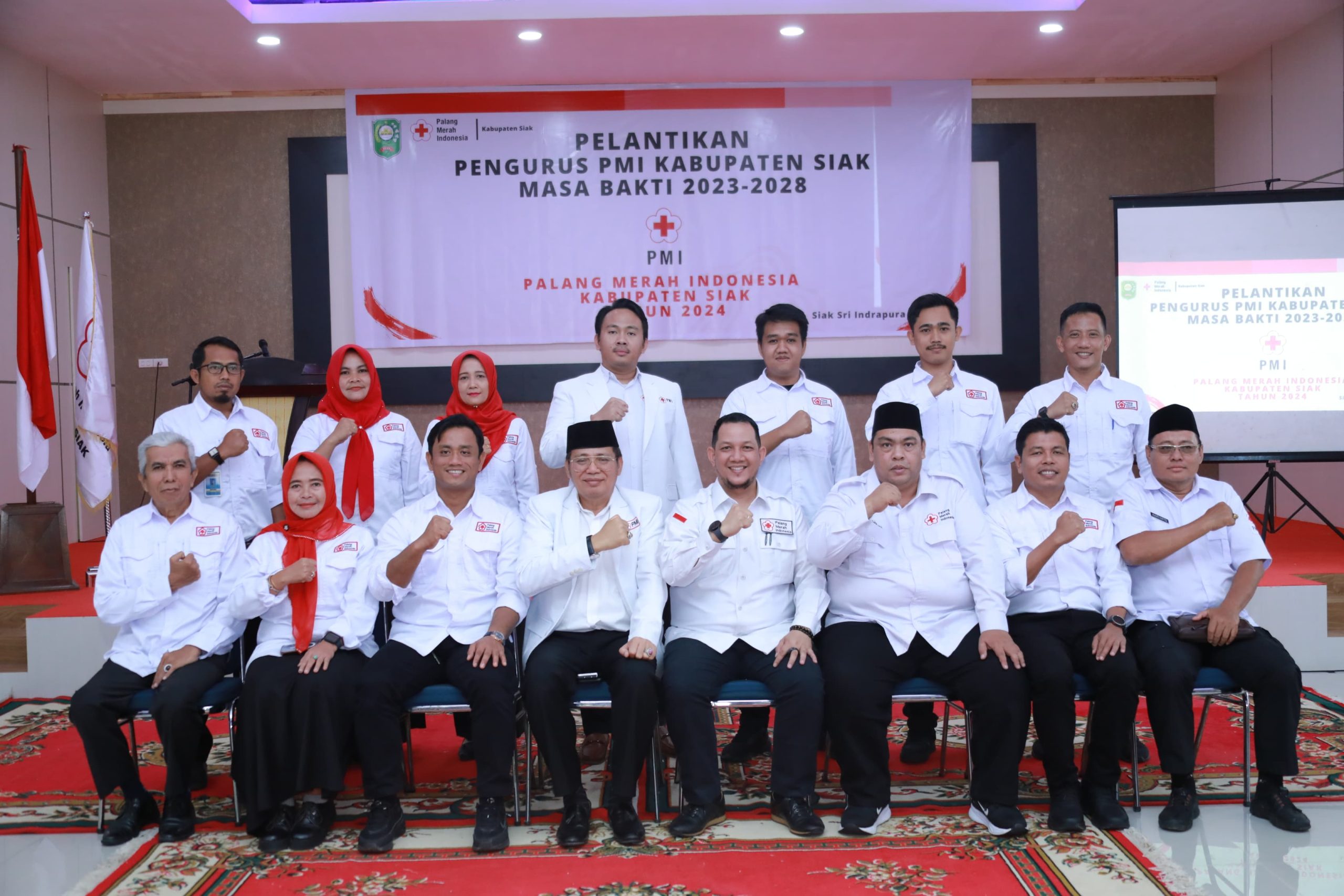 Pengurus PMI Kabupaten Siak, dilantik Pjs Bupati Siak, yang diwakili Asisten Pemerintahan dan Kesra Setda Siak, Fauzi Asni di Gedung Mahratu, Kecamatan Siak, Selasa (12/11/2024).