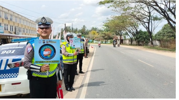 “Kita sampaikan imbauan terkait operasi keselamatan lancang kuning 2023. Kita ajak seluruh warga masyarakat, utamanya pengguna jalan agar tetap tertib dan selalu hati-hati saat berkendara. Disiplin mematuhi rambu lalu lintas, agar tetap selamat di jalan,” kata AKP Kaliman Siregar.