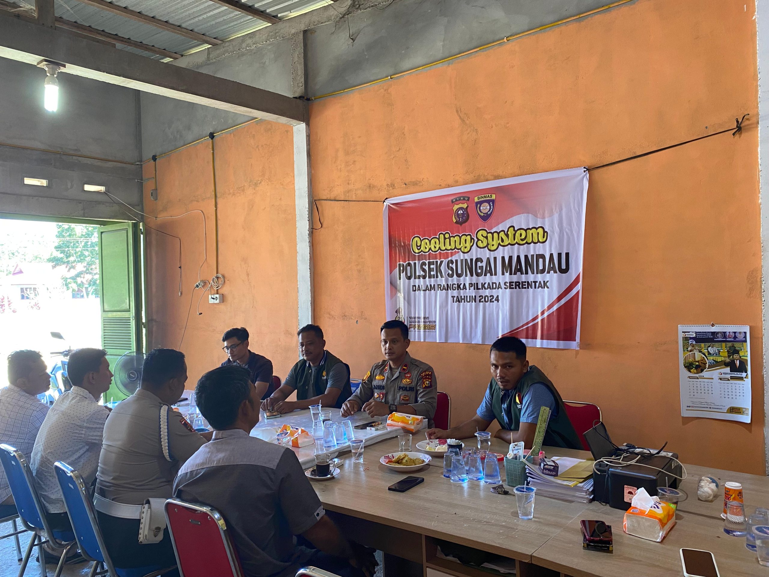 SUNGAI MANDAU – Polsek Sungai Mandau laksanakan Kegiatan Cooling System menjelang Pilkada serentak tahun 2024 di Kecamatan Sungai Mandau Kabupaten Siak, Jum’at (27/9/2024) Sekira pukul 09.00 wib sampai selesai tepatnya di Kantor Panwascam Kecamatan Sungai Mandau.