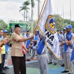 SIAK-Bupati Siak Alfedri melepas keberangkatan 58 Kontingan Pekan Nasional (PENAS) XVI Kontak Tani Nelayan Andalan (KTNA), menuju Kota Padang Sumatera Barat (Sumbar), Kamis (8/6/2023)