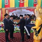SIAK Mandiripos.com-Bupati Siak Alfedri di damping Gubernur Riau Syamsuar hadir pada acara pengukuhan pemangku adat