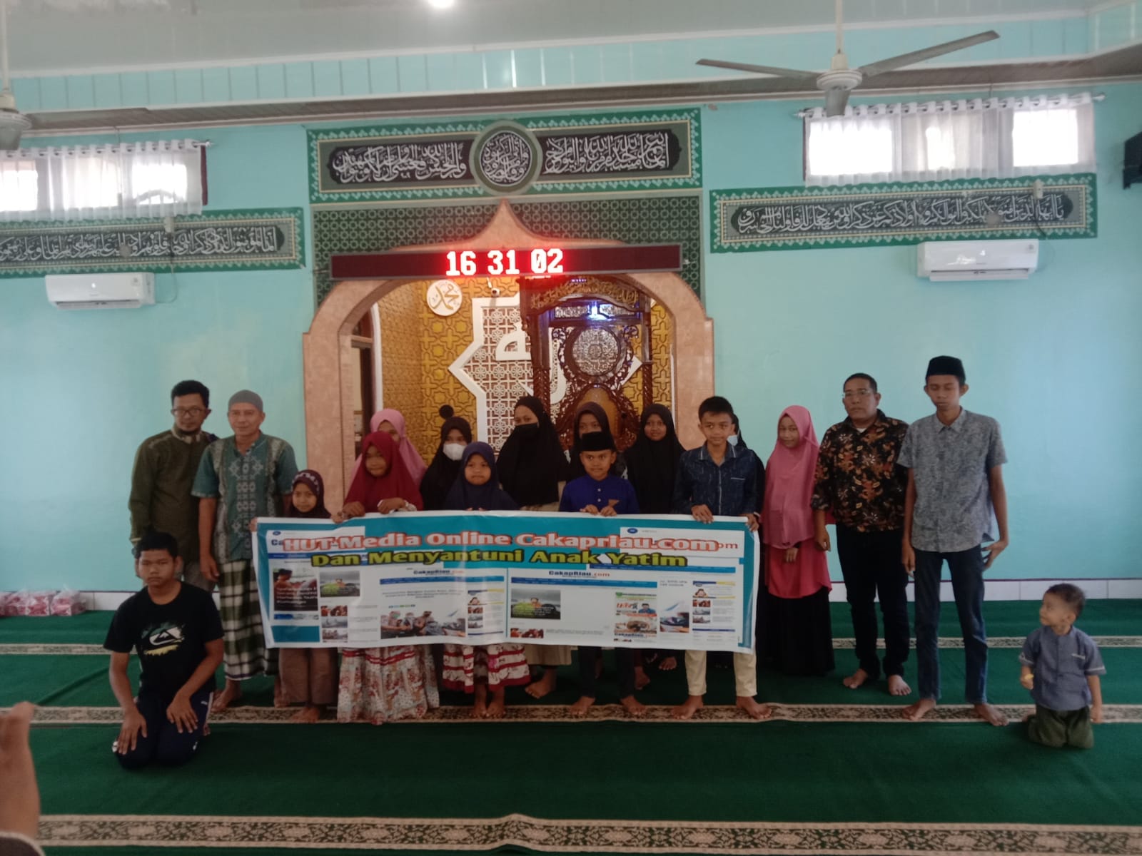 PINGGIR-Dalam rangka Hari Ulang Tahun(HUT) ke-1,Media Online cakapriau.com mengelar acara pemberian lsantunan kepada puluhan anak yatim di Mesjid Al Irsyad Kelurahan Titian Antui Kecamatan Pinggir Kabupaten Bengkalis, pada Sabtu sore (26/03/2022) sekira pukul 16.30 wib.