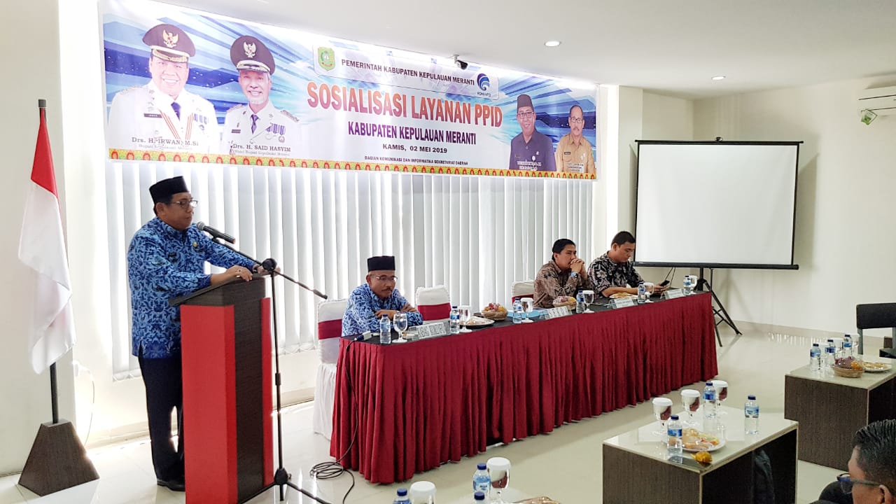 Meranti,Mandiripos.com-Dalam rangka memberikan pemahaman kepada Aparatur Sipil Negara (ASN) Dilingkungan Pemkab. Meranti, bagian Komunikasi dan Informasi Sekdakab. Meranti menggelar Sosialisasi Layanan Pejabat Pengelola Informasi dan Dokumentasi (PPID), kegiatan dibuka langsung oleh Sekdakab. Meranti H. Yulian Norwis SE MM, dipusatkan di Ballroom Hotel Grand Indo Baru, Selatpanjang, Kamis (2/5/19).