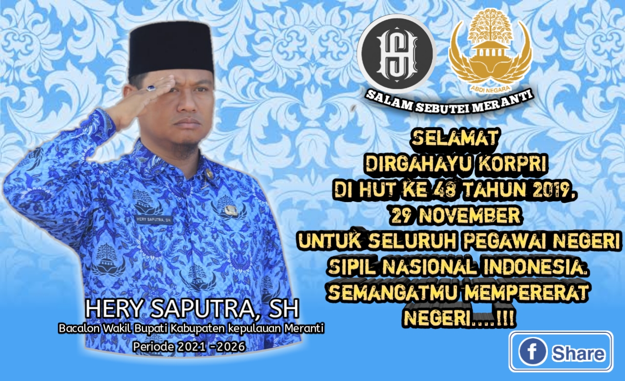 “Selamat ulang tahun di HUT ke 48 Dirgahayu KORPRI 2019! “Demikian diucapkan Hery Saputra merupakan Kabag Humaspro di Meranti Jum’at 29/11/2019 melalui pesan singkatnya kepada mandiripos.com