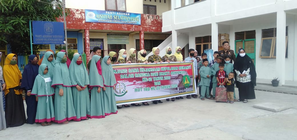 Meranti – Dalam rangka merayakan peringatan Hari Bhakti Adhiyaksa yang ke-20, para isteri korps kejaksaan yang tergabung dalam Ikatan Adhyaksa Darmakarini (IAD) Kejaksaan Negeri Kepulauan Meranti, sambangi Panti Asuhan Aisyiyah dengan menghadirkan pemeran sinetron Tuyul dan Mbak Yul dari ibukota, Selasa (21/7/2020).