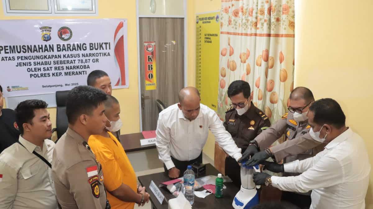 MERANTI – Polres Kepulauan Meranti kembali menunjukkan komitmennya dalam memberantas peredaran narkotika di wilayah hukumnya, dalam kegiatan press release pemusnahan barang bukti atas Pengungkapan Kasus Narkotika jenis Shabu di Ruang Narkoba Polres Meranti, Senin (26/05/2025) pagi.