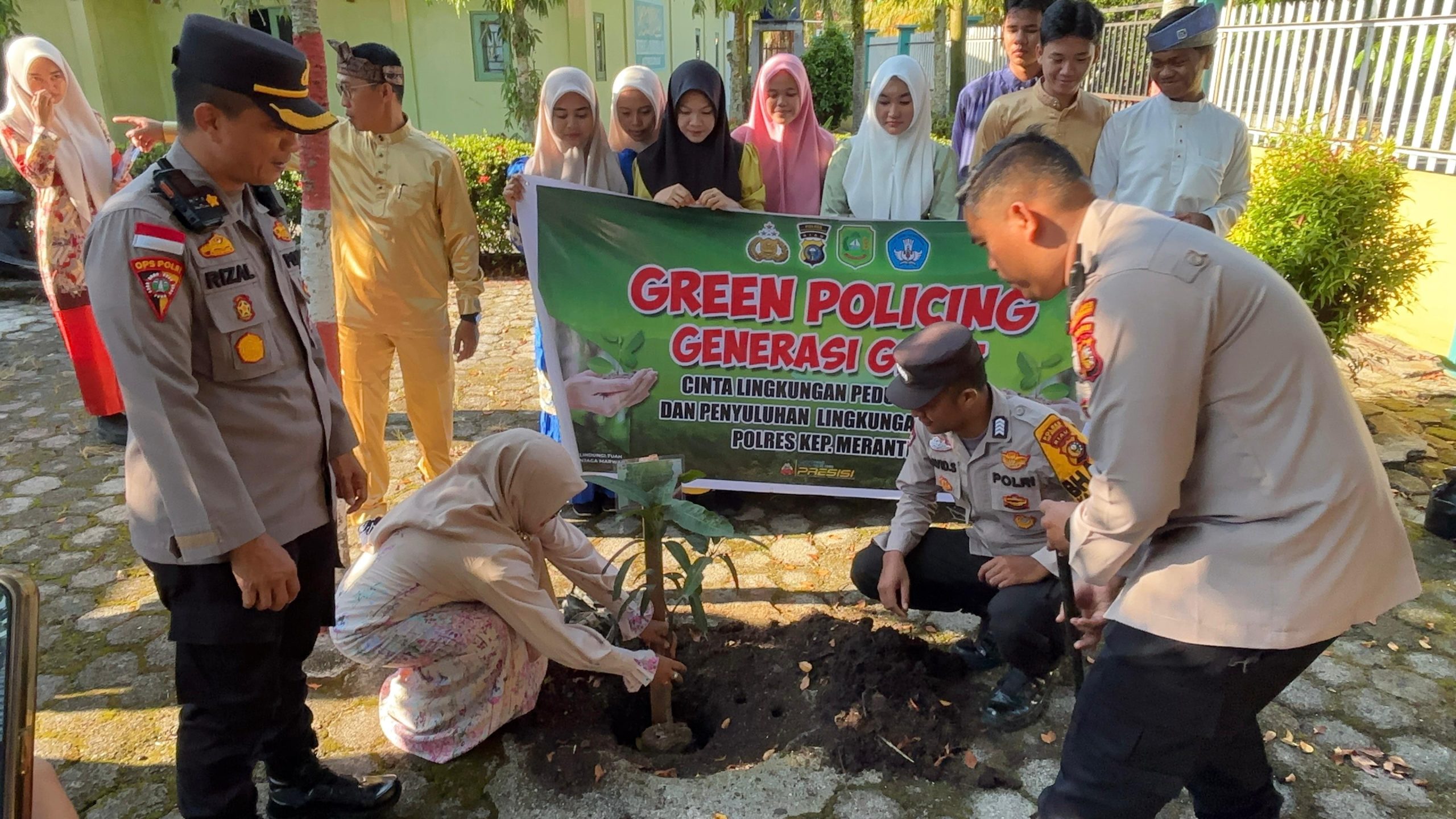 Meranti–Sabtu Rabu, 6 Agustus 2025 sekitar Pukul 07.30 wib kegiatan GREEN POLICING Polres Kep. Meranti berupa kegiatan Sosialisasi edukasi peduli lingkungan dan kegiatan penanaman bibit pohon Mangga kembali dilaksanakan pada dua wilayah sekolah yaitu di SMA 2 N Tebingtinggi dan SMPN 2 Selatpanjang Kec. Tebing Tinggi Kab. Kep. Meranti.