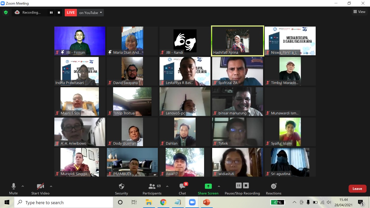 Demi mewujudkan akuntabilitas media agar makin berdaya dan makin berjaya itulah, baik LPDS maupun Kamibijak.com – dengan didukung Djarum Foundation – menggelar sejumlah program literasi yakni Virtual Workshop bertajuk Media Berdaya, Disabilitas Berjaya. Acara ini diisi dan dimeriahkan dengan pemutaran film berjudul Pengalaman Pembuatan Film Disabilitas dengan menampilkan sutradara Ucu Agustin. Acara ini diadakan pada Rabu, 28 April 2012, pukul 12.00-15.00 WIB.