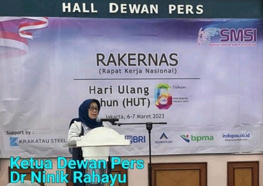 Ketua Dewan Pers, Dr Ninik Rahayu mengatakan hal itu di depan sekitar 300 pemimpin perusahaan pers dan pemimpin redaksi media siber, saat membuka Rapat Kerja Nasional (Rakernas) dan HUT ke-6 Serikat Media Siber Indonesia (SMSI) di Hall Dewan Pers, Jakarta, Senin (6/3/2023).