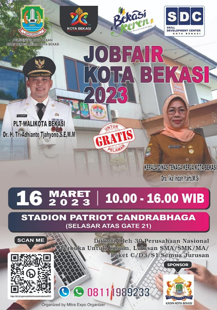 Kota Bekasi. Mandiri Pos-Dalam rangkaian Bekasi Fair di HUT Kota Bekasi ke 26 Tahun, Dinas Tenaga Kerja Kota Bekasi akan menggelar Job Fair Tahun 2023 yang akan bertempat di Stadion Patriot Candrabhaga Kota Bekasi pada 16 Maret 2023 pada pukul 10.00 – 16.00 Wib.