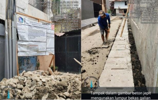 Pekerjaan saluran uditch dan penutupnya terlihat asal jadi seperti di Jl. Industri IX, Sawah Besar, Kota Administrasi Jakarta Pusat.
