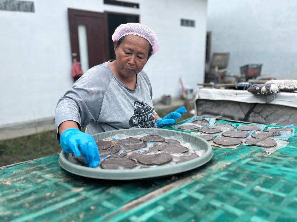 “Sekarang, badan saya mudah capek. Tapi mau bagaimana lagi, saya tidak punya banyak pilihan. Saya tidak punya waktu menyalahkan nasib. Waktu yang saya punya lebih baik dipakai untuk membuat terasi,” katanya sambil memipihkan adonan fermentasi udang rebon.