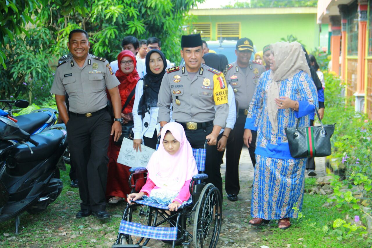 Sang Inisiator Jum’at Barokah Edy Sumardi P SIK, memberikan Bulan Boneka Poni berwarna merah saat bersilaturahmi ke rumahnya, Sabtu (21/04/2018). Dengan diam-diam Edy mencaritau tentang Bulan. Wakapolresta Pekanbaru membelikan boneka kesayangannya.