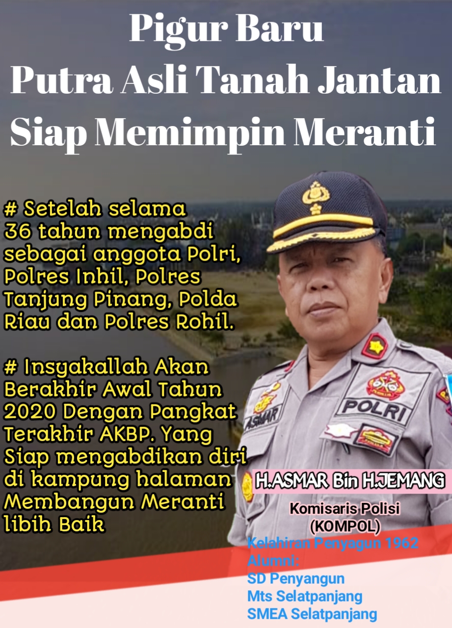 Meski demikian, Kompol H Asmas kelahiran Desa Panyagun ini berniat akan tetap mengayomi masyarakat meski sudah tidak mengabdi sebagao anggota polri Republik indonesia lagi. Namun dirinya berniat memberikan perubahan dengan pigur baru sebagai pemimpin di Kepulauan Meranti.