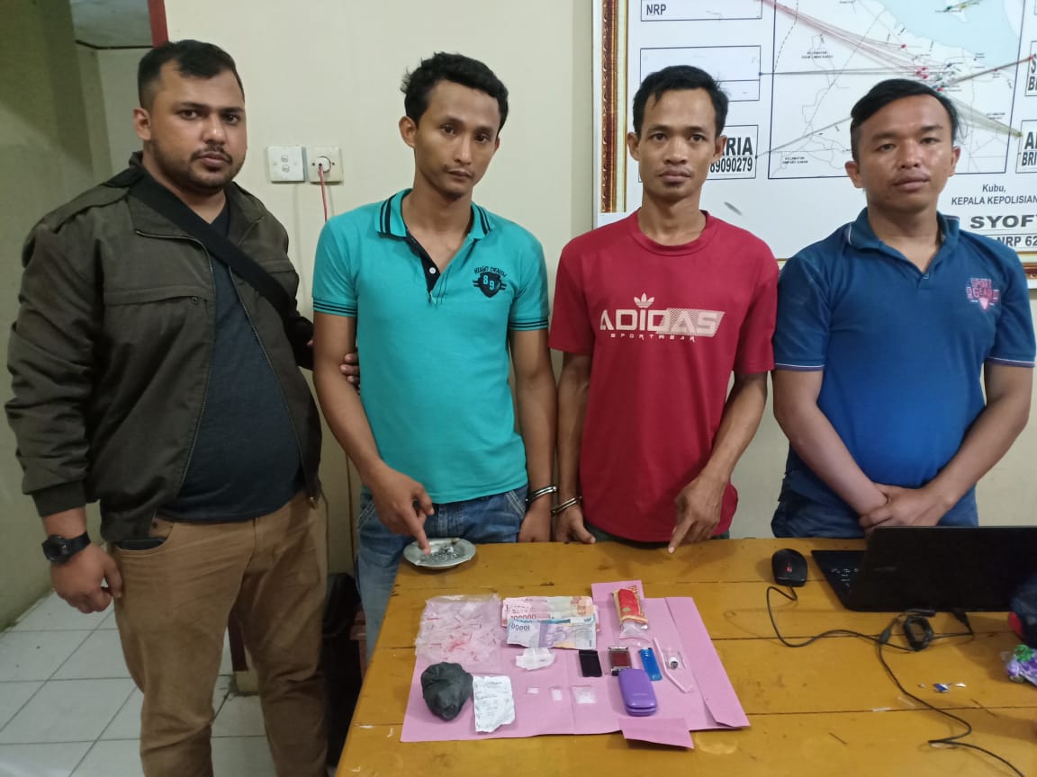 UjungTanjung — Tim Opsnal Polsek Kubu berhasil mengamankan 2 dari 3 pelaku penyalahgunaan narkotika jenis shabu di Jalan Parit Mat Ali RT 005 RW 003 Kepenghuluan Tanjung Leban Kecamatan Kubu – Rokan Hilir, Selasa 27 Agustus 2019 kemarin.