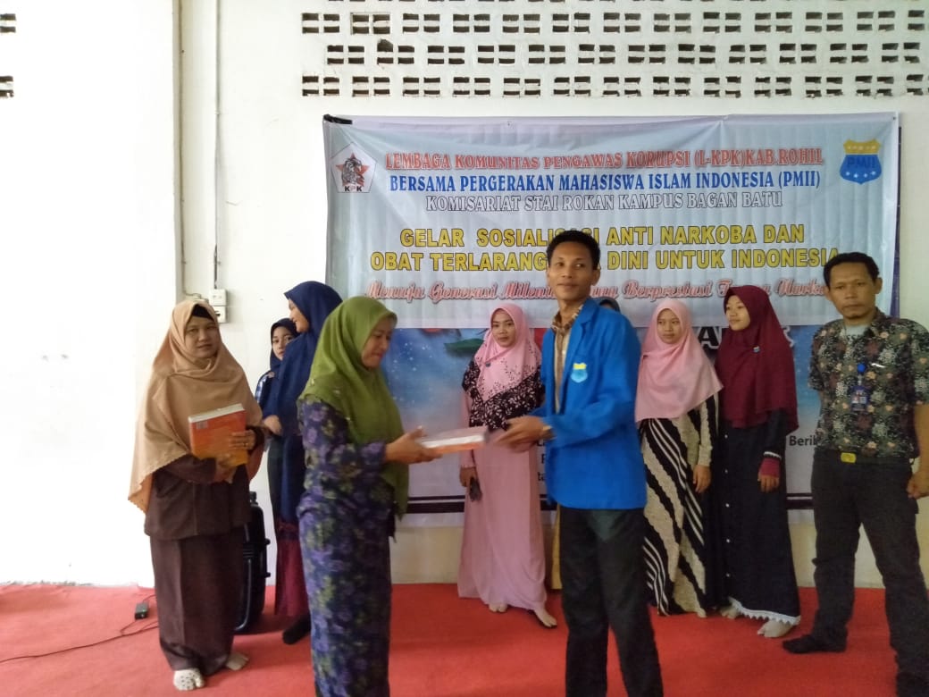 Mahasiswa Islam Indonesia (PMII) Komisariat Stai Rokan Bagan Batu bersama Lembaga Komunitas Pengawas Korupsi (L-KPK) Kabupaten Rokan Hilir kembali gelar kegiatan pembagian buku Anti Narkoba Usia Dini secara geratis kepada sekolah Dasar Pondok Qur’an Almajidiah Bagan Batu, Kecamatan Bagan Sinembah.