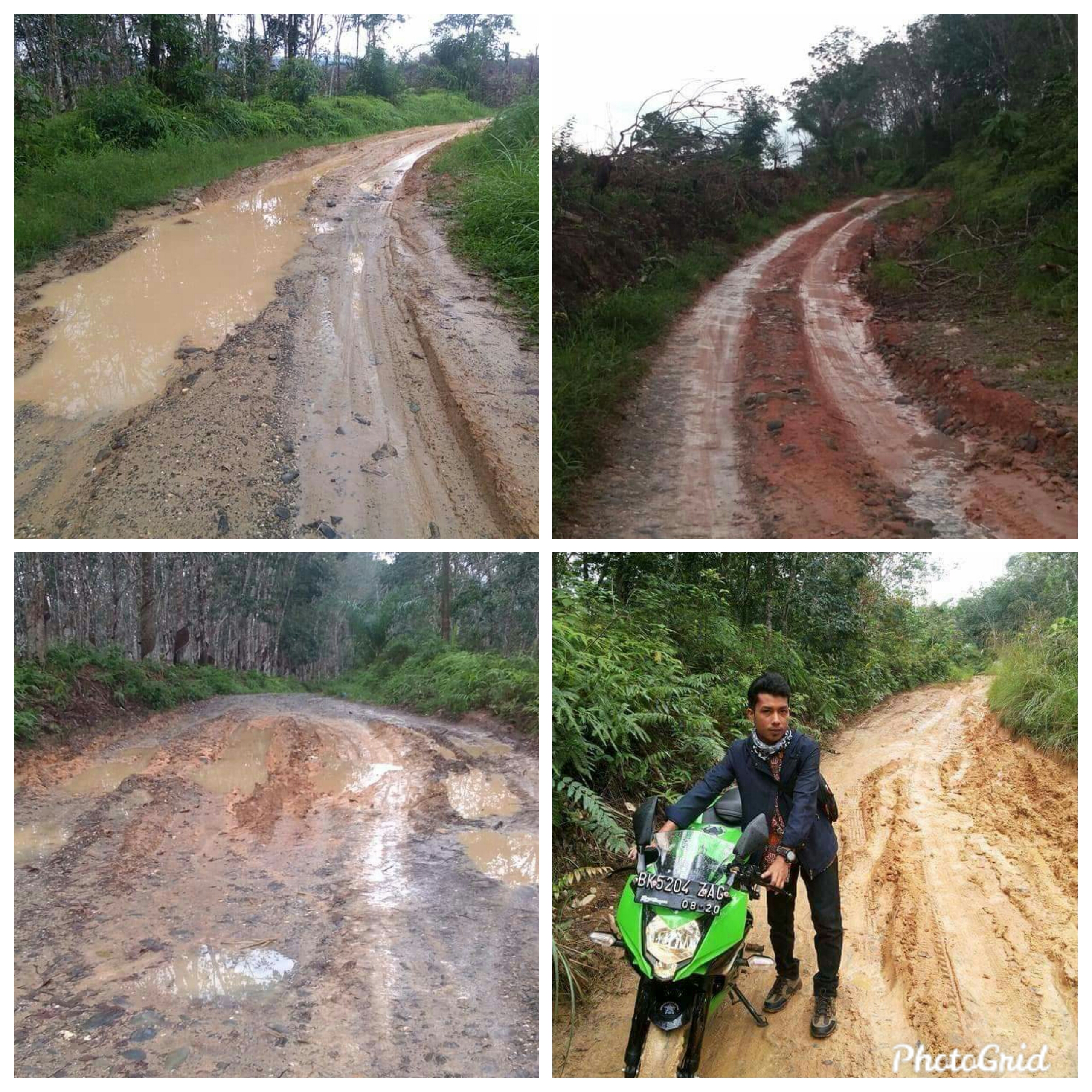 Pasalnya, sejak Puluhan Tahun yang silam jalan lintas tersebut tidak pernah di sentuh pembangunan jalan Aspal oleh pemerintah, sehingga warga masyarakat yang melintas setiap harinya harus menikmati rasanya lumpur. Saking rusaknya jalan itu, apabila pada musim penghujan kondisinya lebih mirip dengan kubangan kerbau.