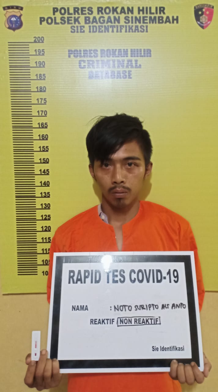 Kapolres Rokan Hilir AKBP Nurhadi Ismanto, SH SIK melalui Kasubag Humas AKP Juliandi SH menjelaskan pelaku diamankan petugas setelah dibawa korban Suroyo (46) bersama warga membawa pelaku beserta barang bukti seperti 1 buah mesin pompa air merk sanyo dan 1 buah kotak hand phone merk OPPO A 37 warna putih ke Kantor Polsek Bagan Sinembah untuk membuat laporan.
