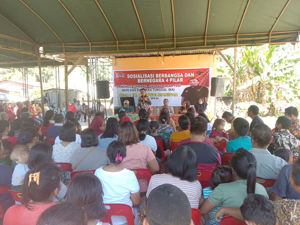 Baganbatu — Sebagai upaya memperkuat pondasi dalam kehidupan berbangsa dan bernegara, tepatnya pada hari Sabtu 30 Juli 2022 di Lancang Kuning Kepenghuluan Bagan Batu dilaksanakan Sosialisasi 4 Pilar Kebangsaan yang mana Ir.Effendi Sianipar sebagai salah satu anggota MPR RI ini bertindak langsung sebagai leader dalam kegiatan sosialisasi yang diikuti setidaknya 150 orang peserta.