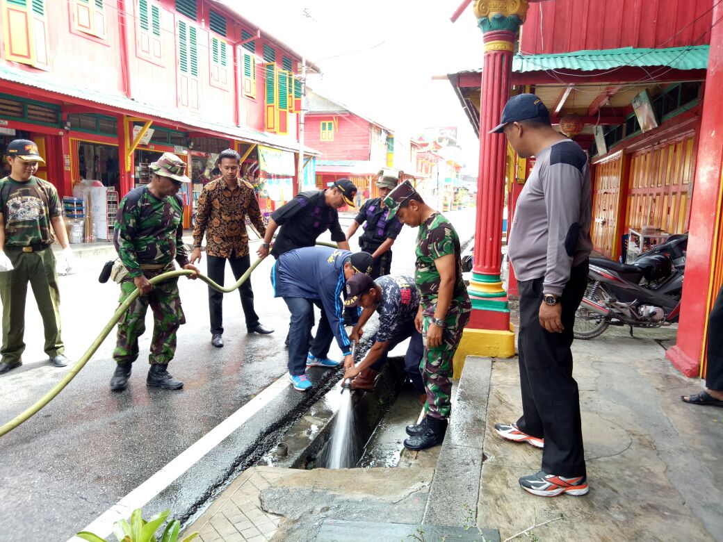 SIAK , Mandiri pos.com-Dengan penuh semangat, wakil Bupati Siak Alfedri terlihat tengah asik membersihkan selokan di daerah pasar bawah Siak, pada Kamis (9/11/2017).