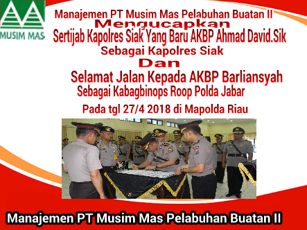 Manajemen PT Musim Mas Mengucapkan Selamat Sertijab Kapolres SiakFitriadiJumat , 27 April 2018Siak577 Dilihat Total Pembaca: 577 Baca Juga Manajemen PT KSI Mengucapkan Selamat Menjalankan Ibadah Puasa dan Hari Raya Idul Fitri 1440 H/2019 .M Jangan LewatkanKetua PWRI Kab.Siak Pertanyakan Kebebasan Pers, Wartawan Dibatasi Saat Peresmian Galangan Kapal MNS di KITB.Senin, 20 April 2026.PT Arara Abadi Diduga Ingkar Janji, Warga Blokir Jalan Doral Hentikan Truk LoggingKetua IWO Siak Sesalkan Dugaan Pembatasan Wartawan, Kebebasan Pers Dipertanyakan di Peresmian Galangan Kapal MNSGelar Apel Sabuk Kamtibmas, Polres Siak Perkuat Sinergitas Dengan Seluruh Elemen Masyarakat Operasional Stockpile Cangkang, DLH Siak: Informasi Terkait KIMI ke PelindoPetani Menjerit! Proyek Sumur Bor Irigasi Miliaran di Siak Diduga Asal Jadi, Padi Warga Mati