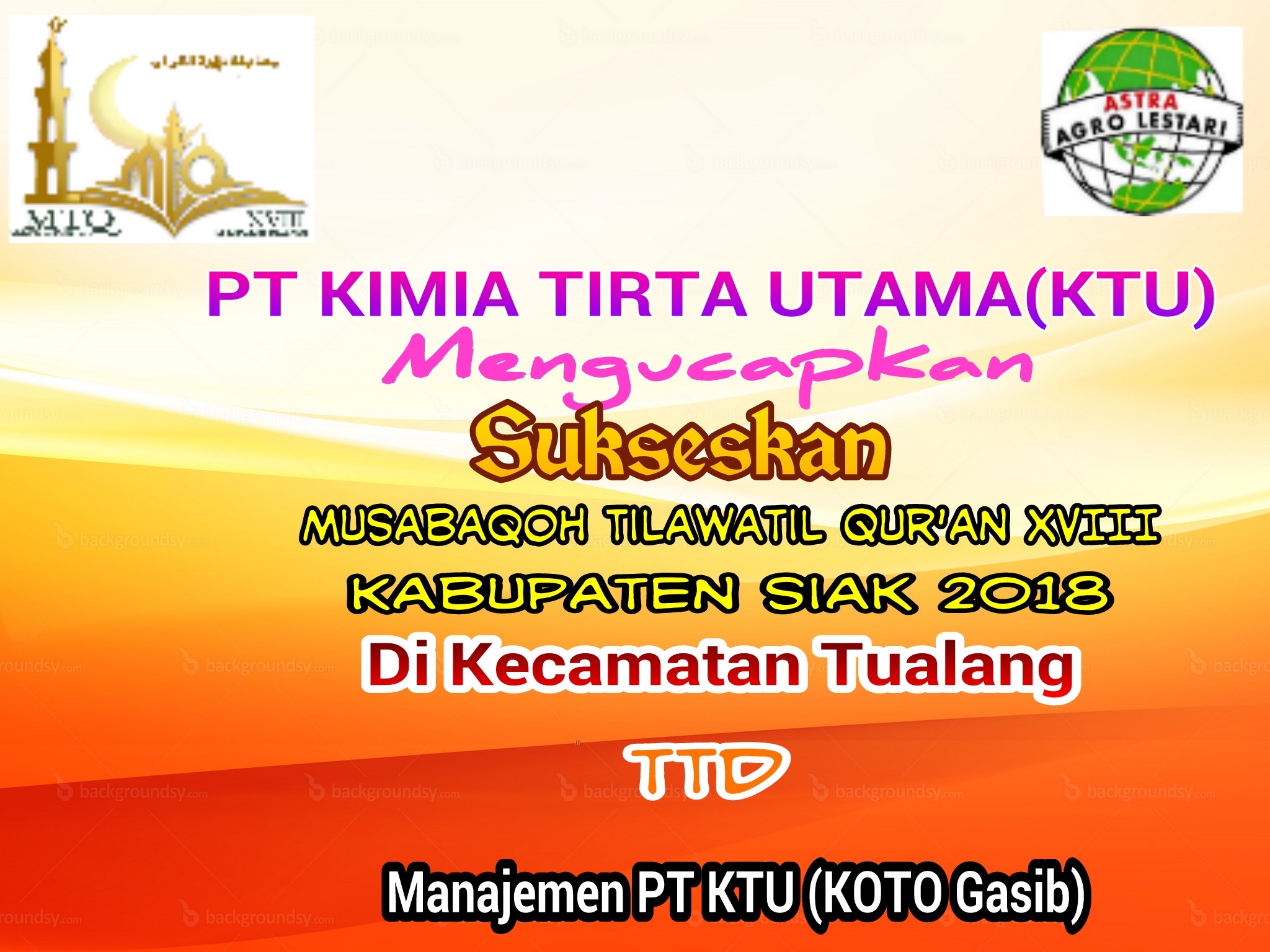 Manajemen PT KTU Mengucapkan Mari Kita Sukseskan Mtq Kabupaten Siak Ke XVIII TualangFitriadiJumat , 20 Juli 2018Tak Berkategori445 Dilihat Total Pembaca: 445