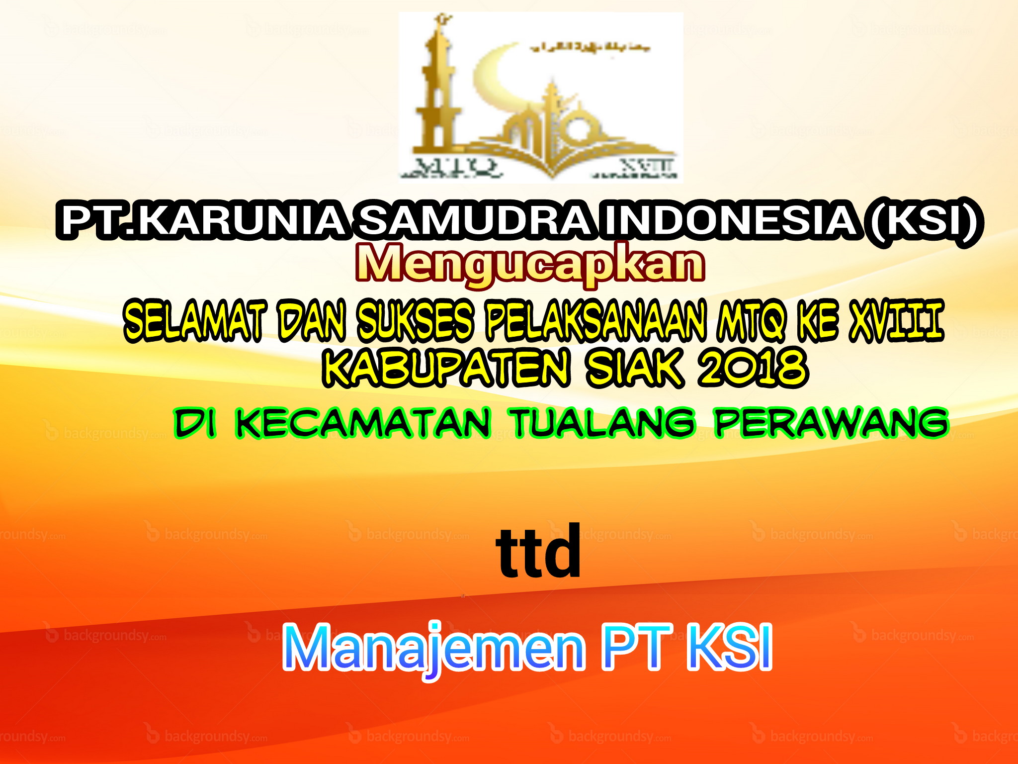 Manajemen PT KSI Mengucapkan Selamat dan Sukses Pelaksanaan MTQ Kab SIak XVIIIFitriadiSabtu , 21 Juli 2018Tak Berkategori403 Dilihat Total Pembaca: 403