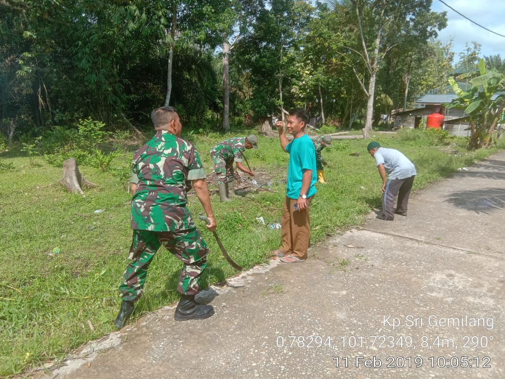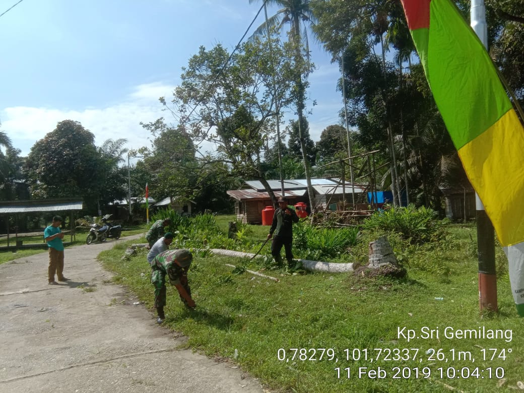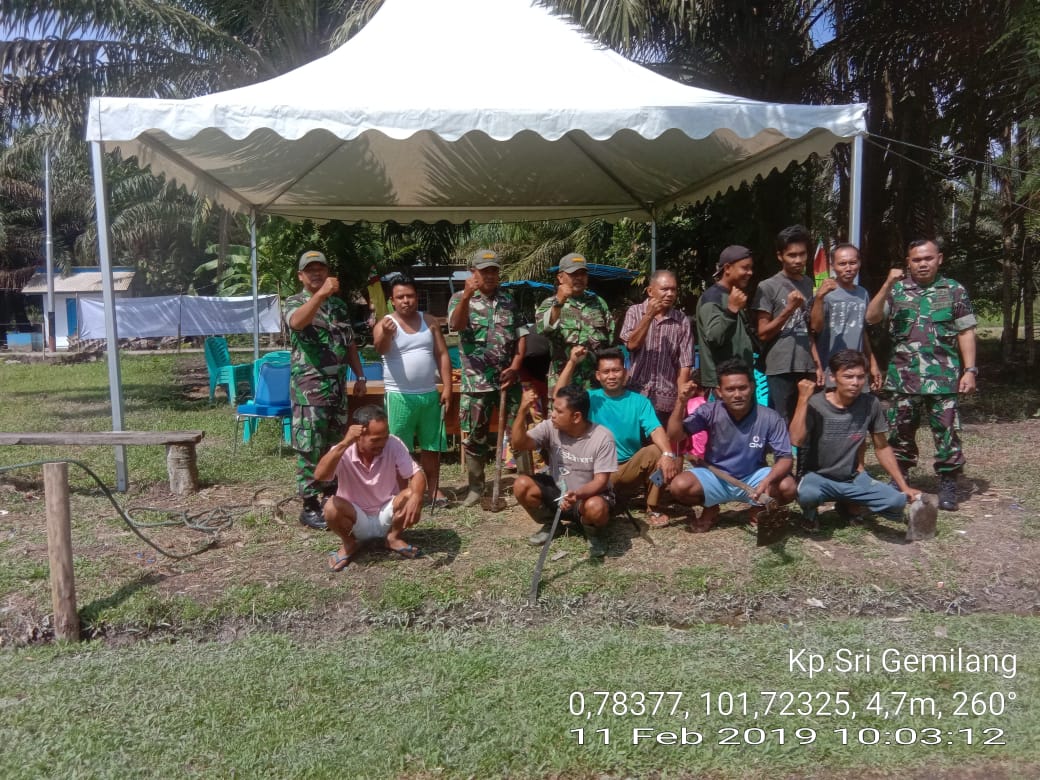 KOTO GASIB,Mandiripos.com- Dalam rangka peningkatan sirahturahmi antara TNI dan Masyarakat di kampung Teluk Rimba khususnya di dusun Sigintil.Pada hari Senin Tanggal 11 Februari 2019 Pukul. 09,00 Wib s.d 11,00 Wib telah dilaksanakan Kegiatan Teritorial Gotong Royong Babinsa Koramil 10 Perawang, Jajaran Kecamatan Koto Gasib Bersama Masyarakat Dusun Segintel Kampung Teluk Rimba Kecamatan Koto Gasib Kabupaten Siak .Dalam Rangka Menyambut Open Turnamen Bola Pemuda Cup 2 Dusun sigintil Sekabupaten Siak Yang Berlokasi di Dusun Sigintil kecamatan Koto Gasib kabupaten Siak.
