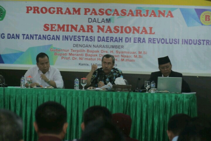 “Mengingat pentingnya tema ini bagi daya saing kita kedepan, bersempena perkuliahan perdana mahasiswa Magister Ilmu Hukum angkatan 10 dan Magister Manajemen 12 Pascasarjana Unilak seminar bertajuk revolusi industti 4.0 dilaksanakan” kata dia.