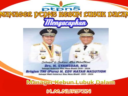 Manager PTPN5 Kebun Lubuk Dalam Mengucapkan Selamat Atas Pelantikan Gubernur RiauFitriadiRabu , 20 Februari 2019Siak488 Dilihat Total Pembaca: 488 Baca Juga Wakil Ketua Dekranasda Kabupaten Siak Kenalkan Batik Pada Generasi Penerus Jangan LewatkanKetua PWRI Kab.Siak Pertanyakan Kebebasan Pers, Wartawan Dibatasi Saat Peresmian Galangan Kapal MNS di KITB.Senin, 20 April 2026.PT Arara Abadi Diduga Ingkar Janji, Warga Blokir Jalan Doral Hentikan Truk LoggingKetua IWO Siak Sesalkan Dugaan Pembatasan Wartawan, Kebebasan Pers Dipertanyakan di Peresmian Galangan Kapal MNSGelar Apel Sabuk Kamtibmas, Polres Siak Perkuat Sinergitas Dengan Seluruh Elemen Masyarakat Operasional Stockpile Cangkang, DLH Siak: Informasi Terkait KIMI ke PelindoPetani Menjerit! Proyek Sumur Bor Irigasi Miliaran di Siak Diduga Asal Jadi, Padi Warga Mati
