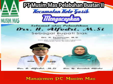 PT Musim Mas Pelabuhan Buatan II Mengucapkan Selamat Pelantikan Bupati Siak Drs H.Alfedri.MsiFitriadiSabtu , 23 Maret 2019Siak596 Dilihat Total Pembaca: 596 Baca Juga Fardiansyah S.S: Tingkatkan Perekonomian Masyarakat Dengan Wira Usaha Jangan LewatkanKetua PWRI Kab.Siak Pertanyakan Kebebasan Pers, Wartawan Dibatasi Saat Peresmian Galangan Kapal MNS di KITB.Senin, 20 April 2026.PT Arara Abadi Diduga Ingkar Janji, Warga Blokir Jalan Doral Hentikan Truk LoggingKetua IWO Siak Sesalkan Dugaan Pembatasan Wartawan, Kebebasan Pers Dipertanyakan di Peresmian Galangan Kapal MNSGelar Apel Sabuk Kamtibmas, Polres Siak Perkuat Sinergitas Dengan Seluruh Elemen Masyarakat Operasional Stockpile Cangkang, DLH Siak: Informasi Terkait KIMI ke PelindoPetani Menjerit! Proyek Sumur Bor Irigasi Miliaran di Siak Diduga Asal Jadi, Padi Warga Mati