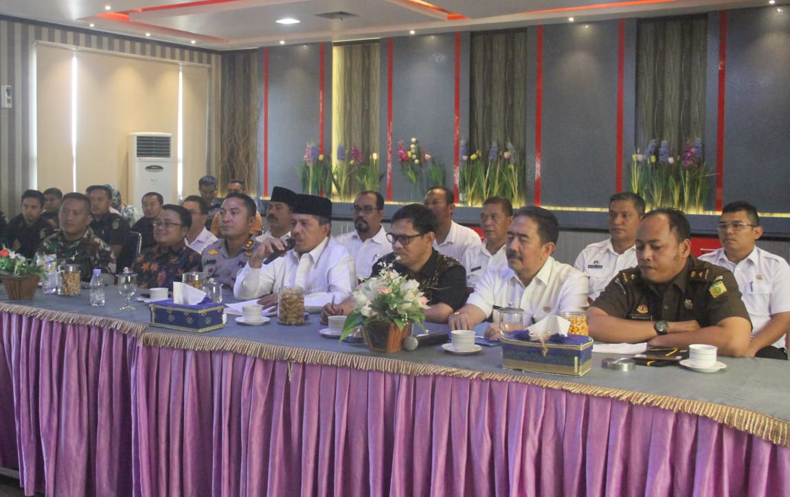 Sebelum mendengarkan laporan persiapan pelaksanaan Pemilu dari masing-masing Kabupaten/Kota di Provinsi Riau, para Bupati/Walikota terlebih dahulu menyimak video conference koordinasi Gubri bersama Dirjen Kemendagri.