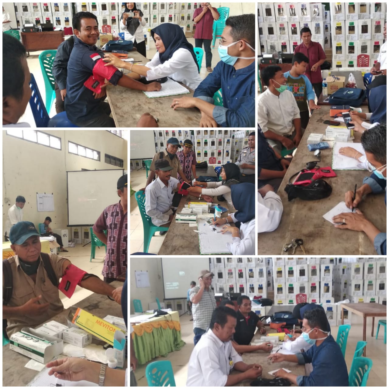 “Alhamdulillah hari ini kita melakukan pengecekan kesehatan serentak. Buat kita dari PPK, Panwaslu, Relawan, petugas keamanan, dan juga saksi parpol semuanya melakukan pengecekan kesehatan. Sebab seperti diketahui, bahwa selama ini kita bertugas disini siang dan malam, sehingga secara tak sadar, kesehatan kita mengalami penurunan,” katanya.