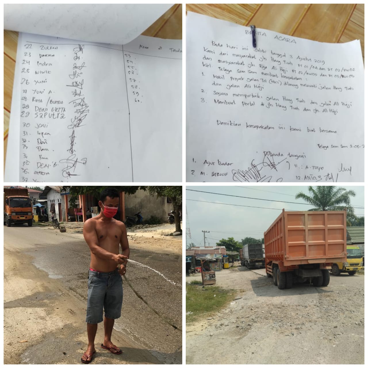 Hingga berita ini diturunkan, ada sekitar 52 warga sudah menandatangani berita acara tersebut. Hal ini dilakukan agar pihak perusahaan peduli dengan kondisi jalan warga, bukan sekedar melalui jalan seolah tanpa merasa bersalah.