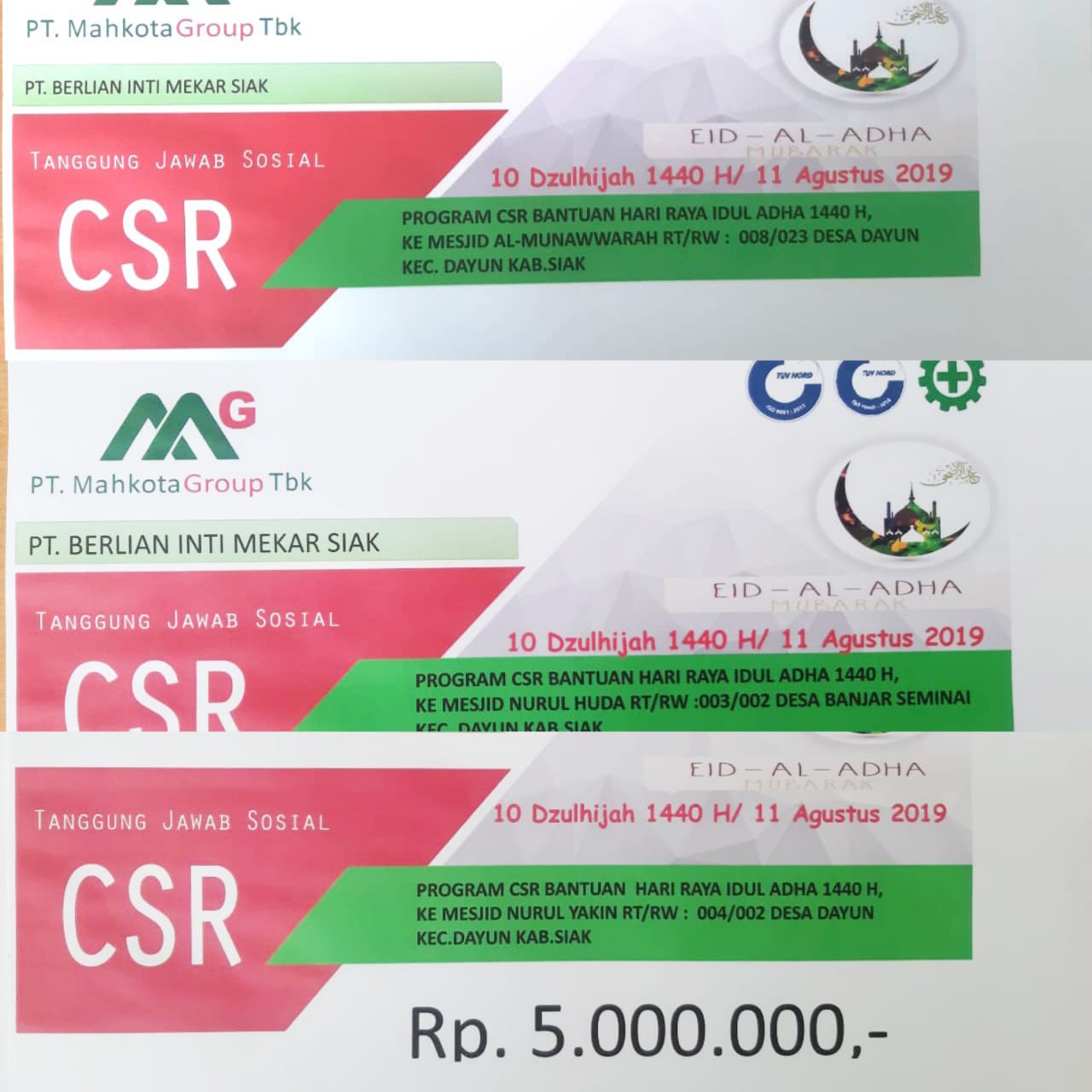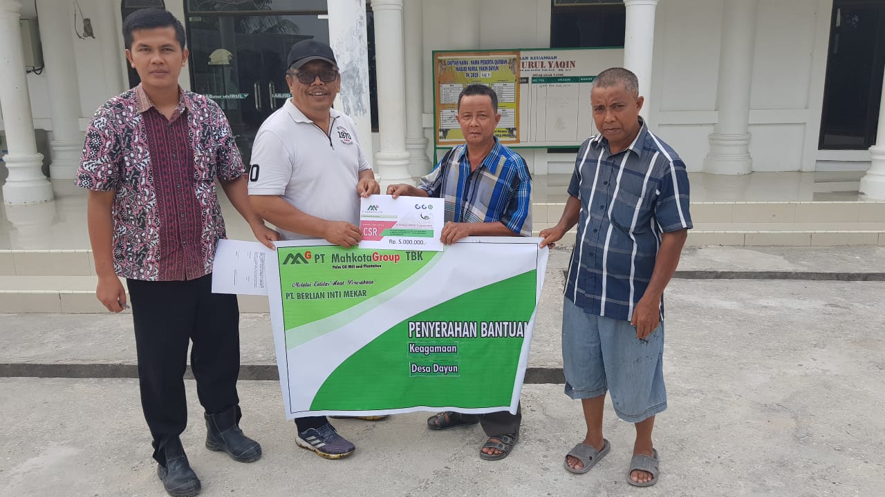 DAYUN-PT. Mahkota Group Tbk kembali menyerahkan bantuan keagamaan yang merupakan program CSR mereka melalui anak perusahaannya PT. Berlian Inti Mekar (BIM) Dayun di Kecamatan Dayun. Penyerahan bantuan ini merupakan komitmen perusahaan yang beroperasi di wilayah Kecamatan Dayun. Bantuan ini merupakan program CSR perusahaan yang memang wajib diberikan sesuai dengan aturan yang ada.