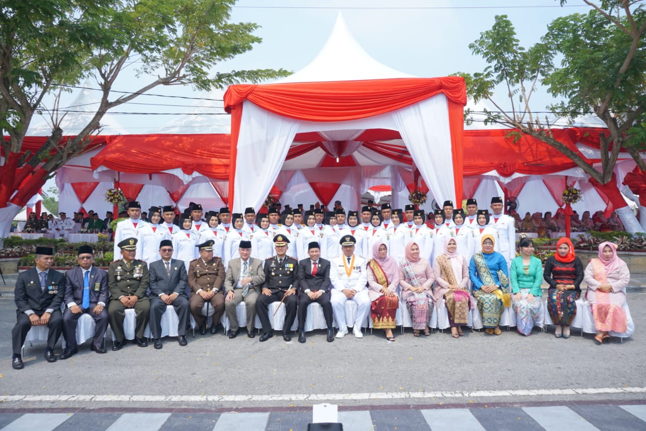 Tampak hadir Ketua DPRD Indra Gunawan beserta anggota, Penjabat Sekretaris Daerah Jamaluddin, Anggota Forkompinda Kabupaten Siak, para asisten, pimpinan OPD, para camat dilingkungan Pemerintah Kabupaten Siak beserta tokoh masyarakat dan segenap hadirin undangan peserta upacara.