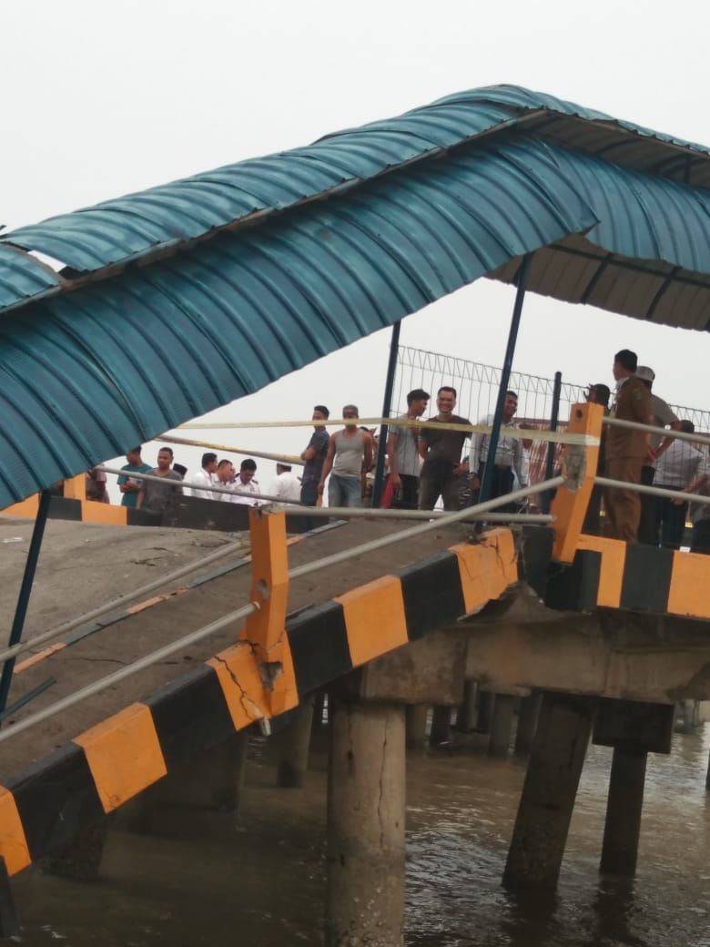 TANJUNG BUTON (SIAK)-Sebuah jembatan Roro Tanjung Buton Sungai Apit Kabupaten Siak ambruk. Ambruknya jembatan tersebut diketahui terjadi sekitar pukul 13.30 WIB. Diketahui, dalam kejadian tersebut, diketahui satu orang personel Dishub Siak belum ditemukan hingga saat ini.