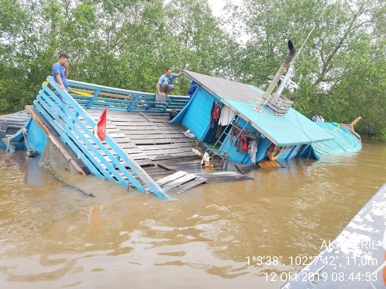 Dalam kapal tersebut juga ada sebanyak 5 orang crew kapal. Kapal tersebut bermuatan sembako dan barang pecah belah yang akan dibawa berlayar menuju Pekanbaru. Berdasarkan keterangangan Kapten Kapal, tenggelamnya Kapal diakibatkan kebocoran pada lambung sebelah kanan.