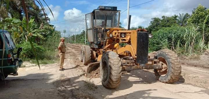 KANDIS-Penghulu Kampung Pencing Bekulo Eka Indrawan Sinaga A.Md berupaya melakukan yang terbaik untuk jalan yang dilintasi oleh warganya. Seperti yang terjadi pada Senin pagi tadi (16/3/20) dimana dengan bantuan alat berupa Gleder, Bomag, dan material kerikil dari PT. TKWL, dilakukan perawatan jalan poros 55 Dusun Lestari Pencing Bekulo.