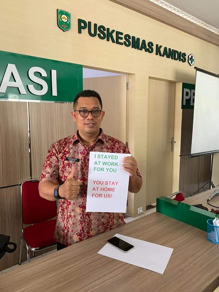 “Sesuai dengan rekomendasi organisasi kesehatan dunia WHO (World Health Organization) dan juga anjuran pemerintah serta PB IDI. Jadi kita juga meminta seluruh masyarakat Kecamatan Kandis khususnya, agar memakai masker terutama saat ke fasilitas kesehatan (Puskesmas, Pustu, Polindes, Poskesdes, dll). Masker yang dipakai cukup yang terbuat dari kain sedapat-dapatnya minimal 2 lapis. Jadi karna masker bedah dan N95 langka, biarlah masker tersebut dipakai oleh tim kesehatan,”jelasnya.