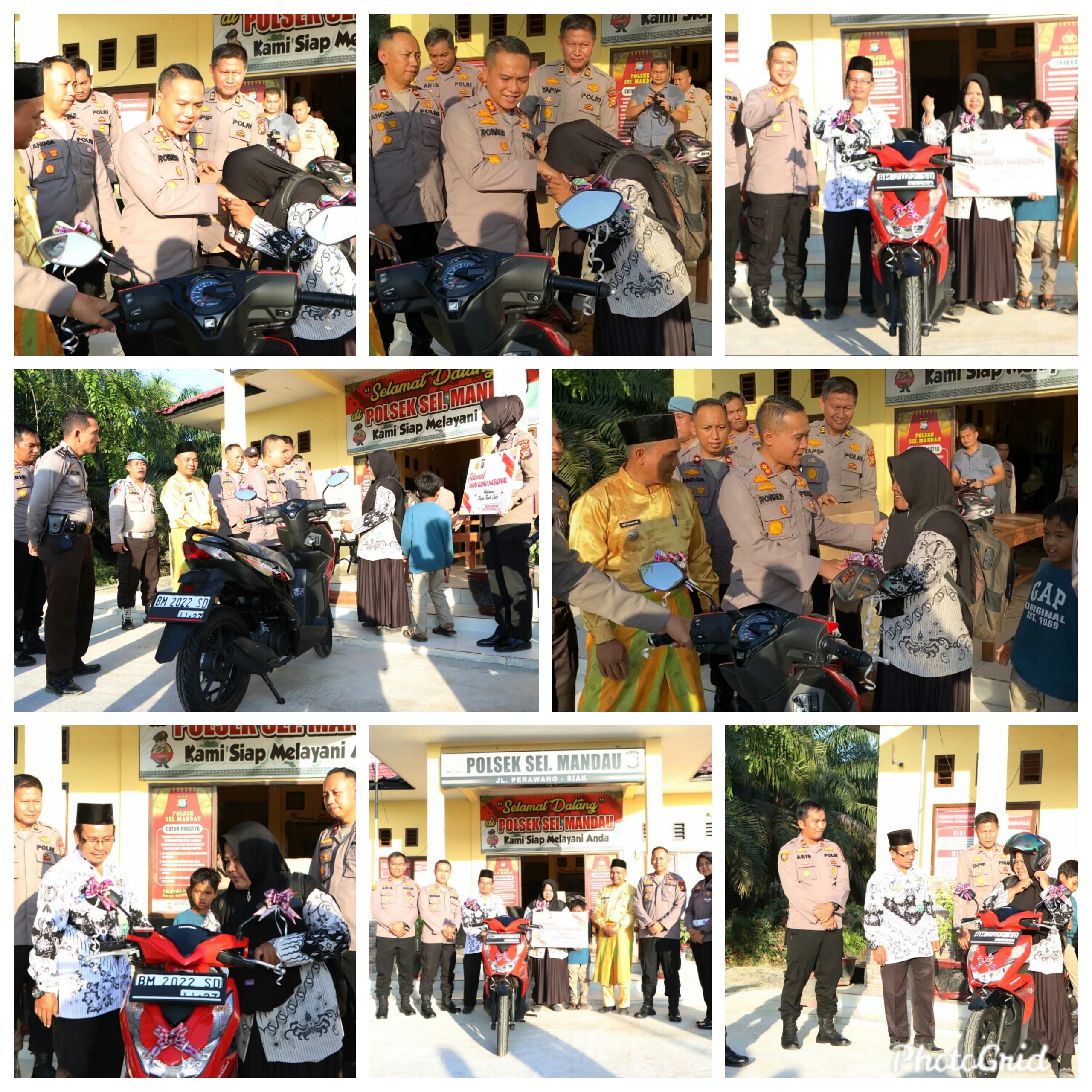 SIAK – Kepala Kepolisian Resort ( Kapolres ) Siak Polda Riau AKBP Ronald Sumaja, S.I.K mewujudkan keinginan Suryati memiliki Sepeda Motor, Suryati merupakan seorang guru Honorer di Sekolah Dasar Negeri 04 Olak Kecamatan Sungai Mandau Kabupaten Siak. Jumat ( 25/11/2022 )